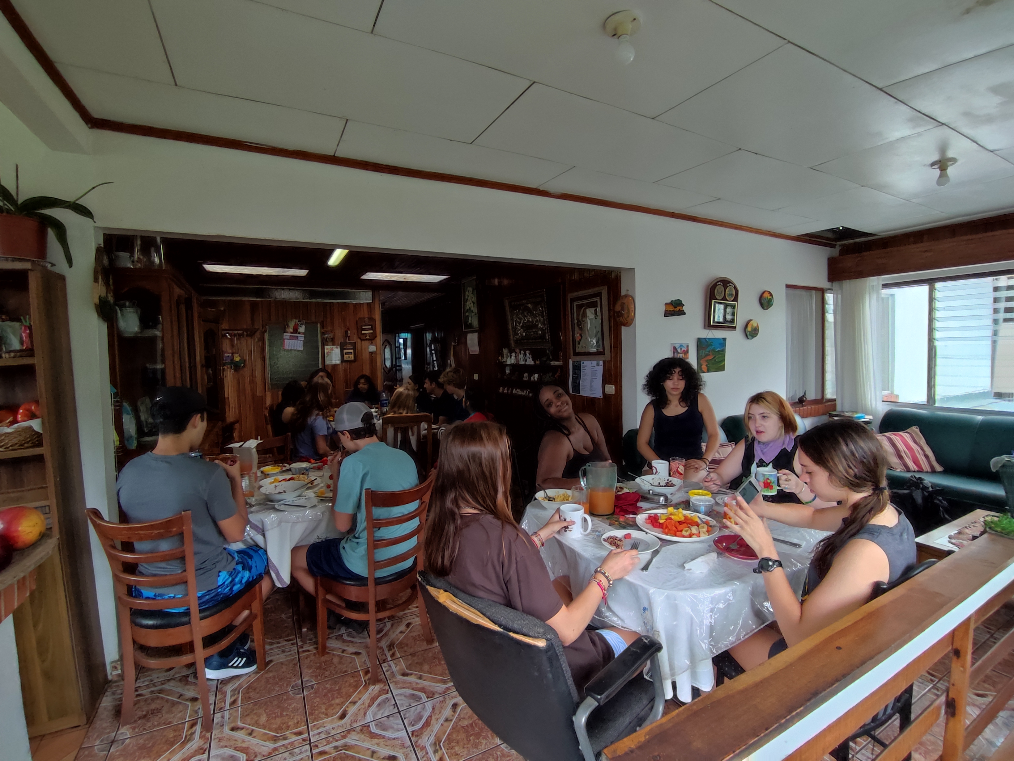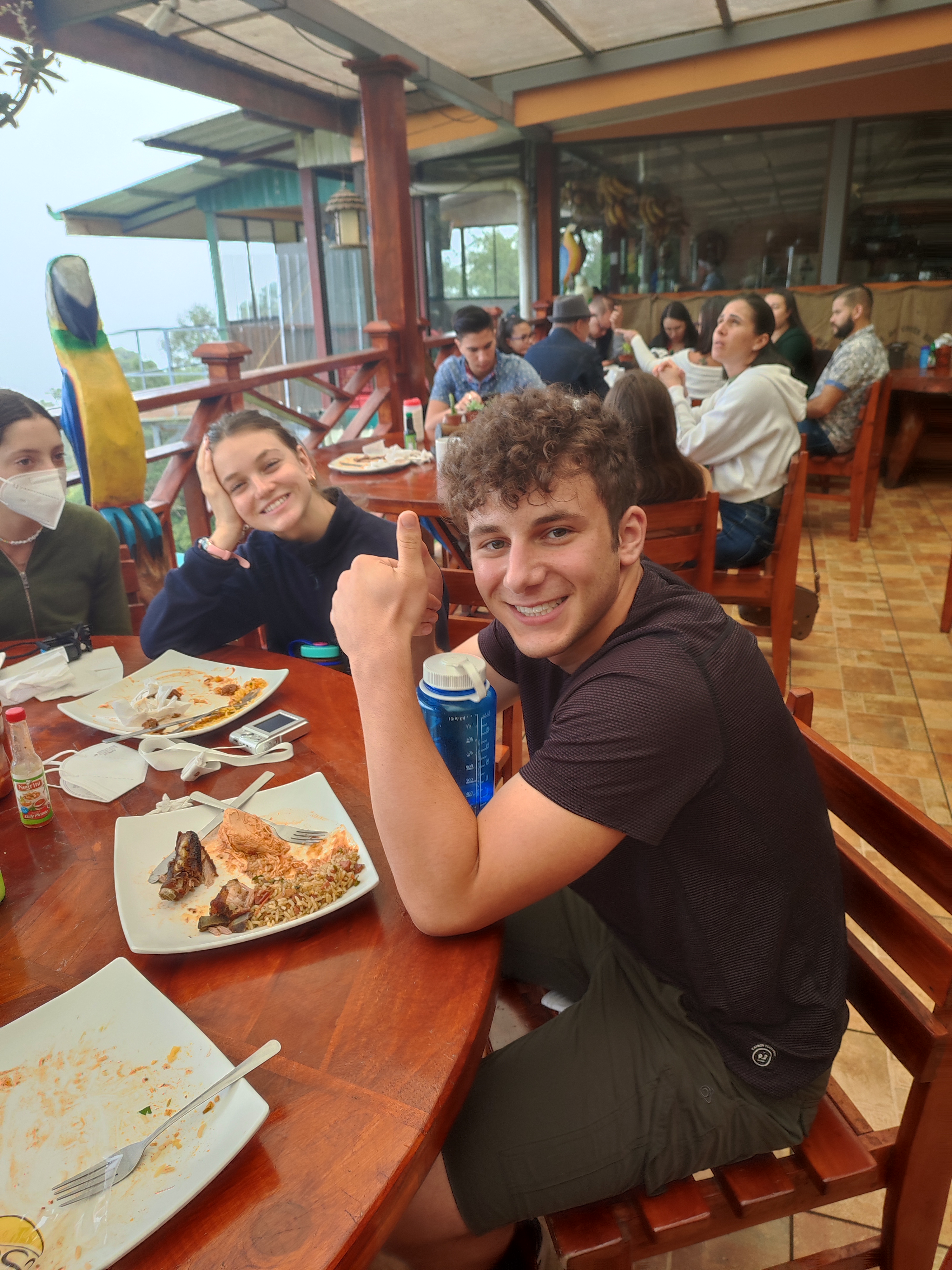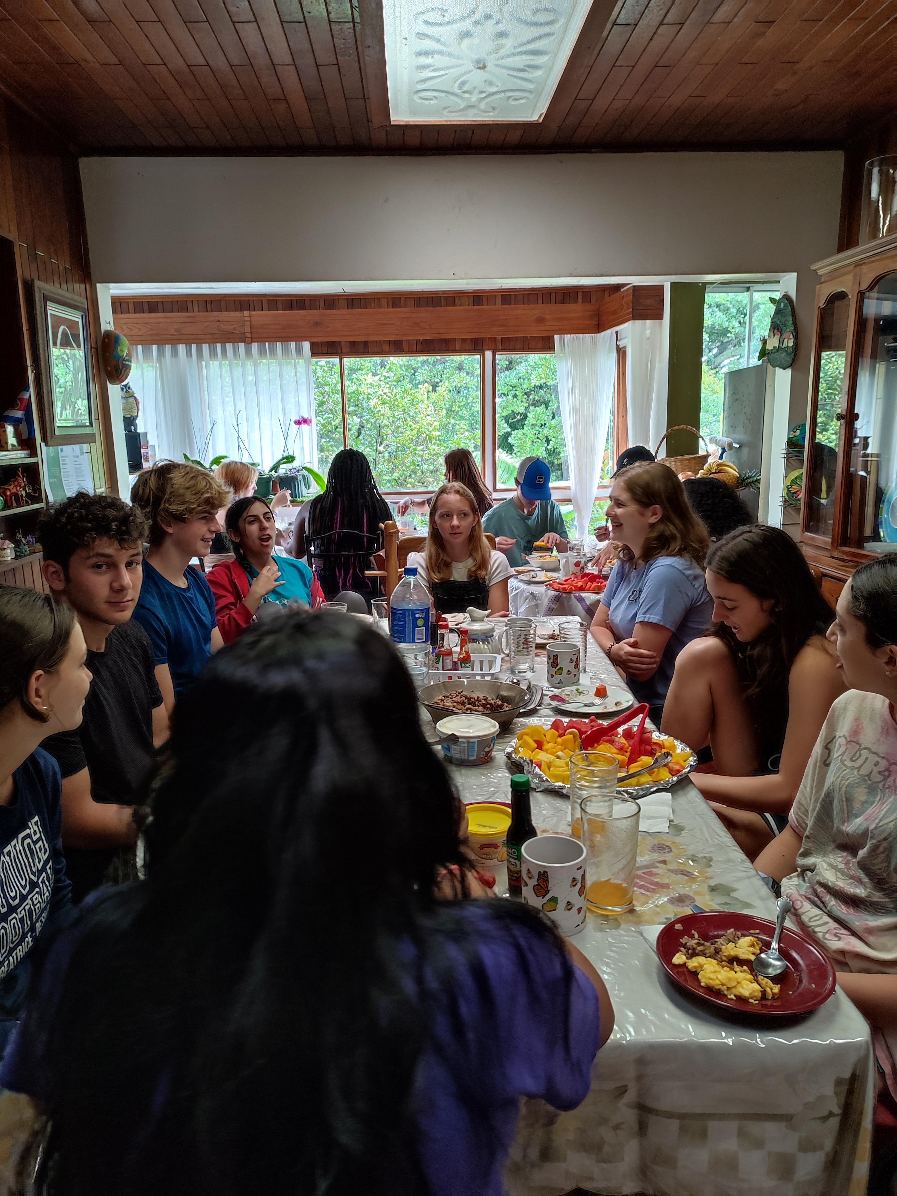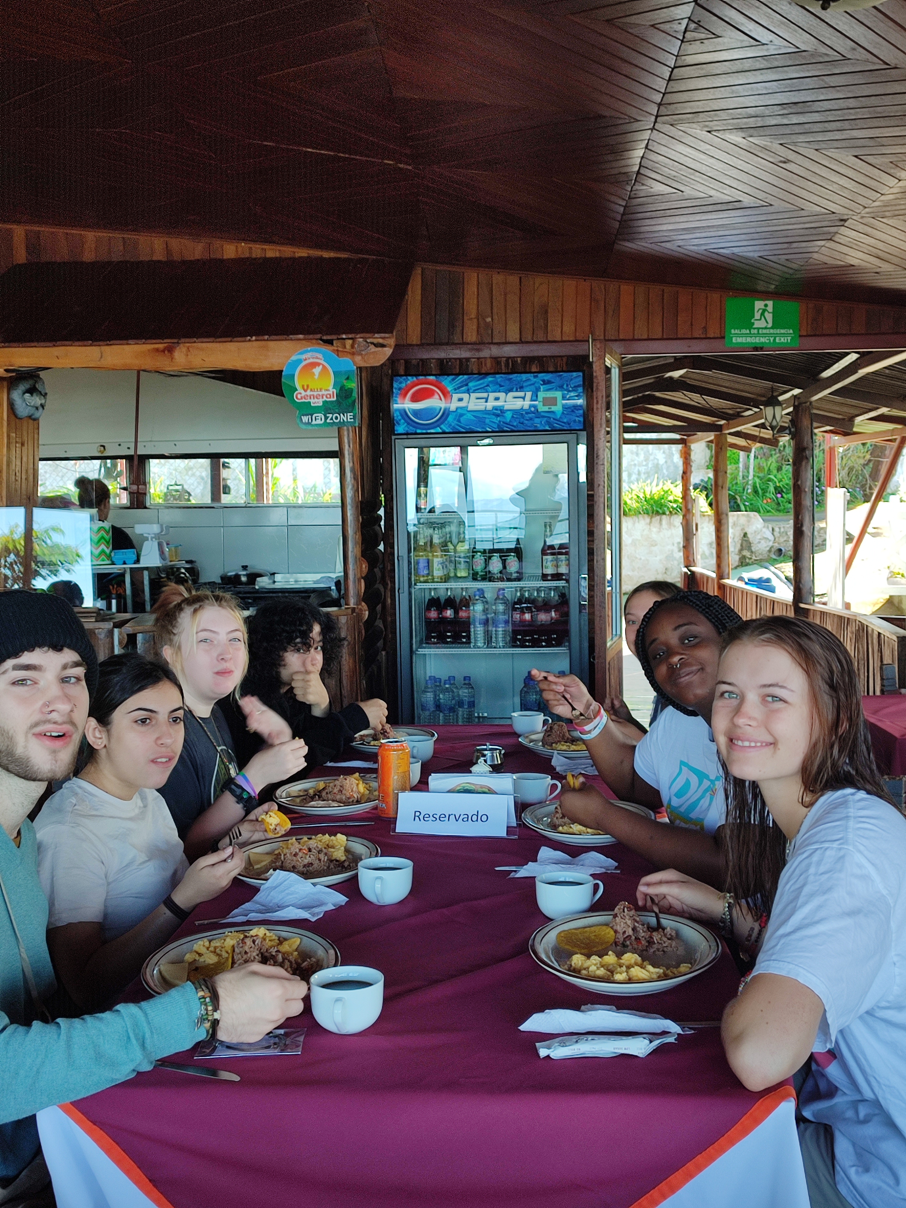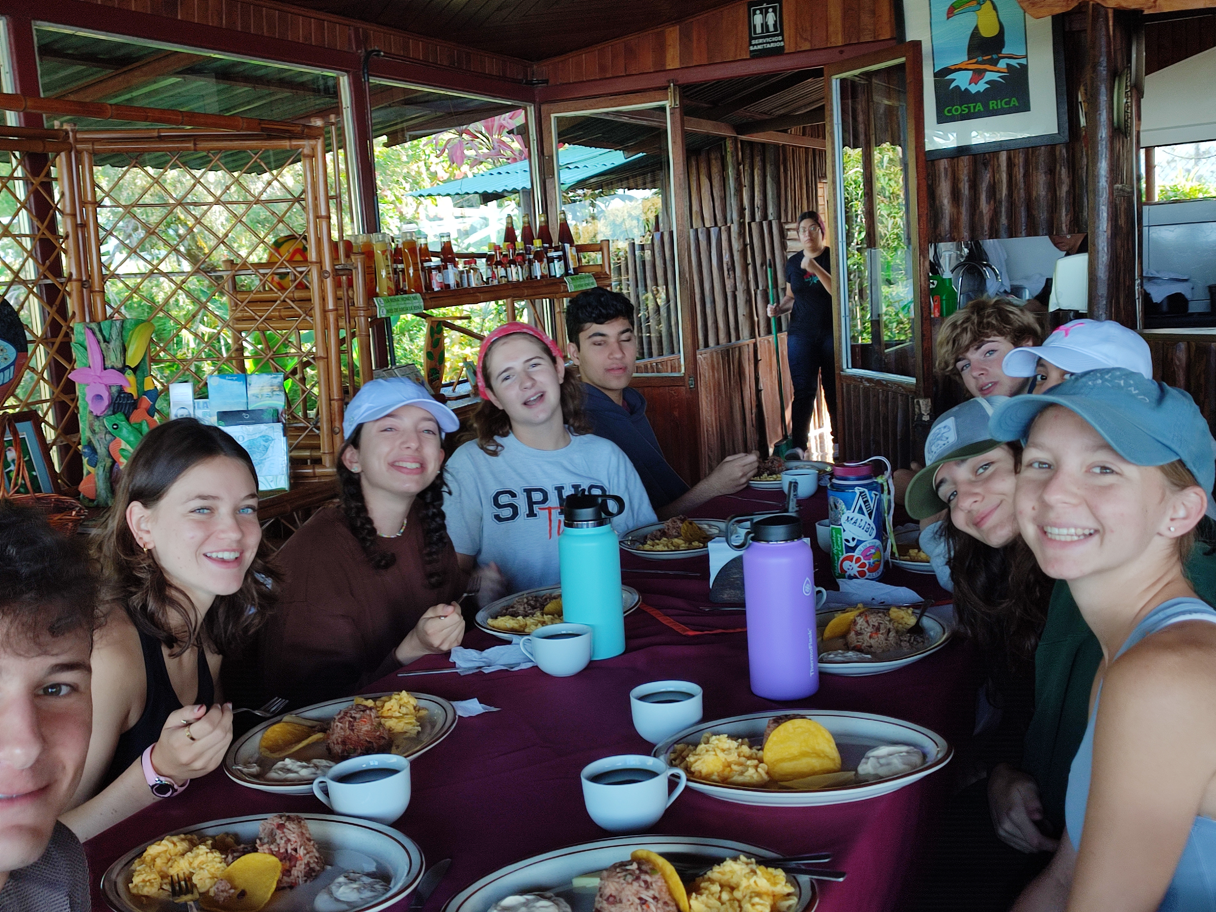 Today, the full group was finally together at breakfast. We ate the best mango and fruit EVER! We got on the bus to go to the Mirador and stopped at the supermercado on the way! We stopped again for some Costa Rican favorites at lunch at Cerro de la Muerte (Hill of Death) at 12,000 feet elevation! After a four-hour bus ride, we got to the Mirador Hotel and the view as unreal! After a few team bonding activities, we all fell asleep. —Brynn B