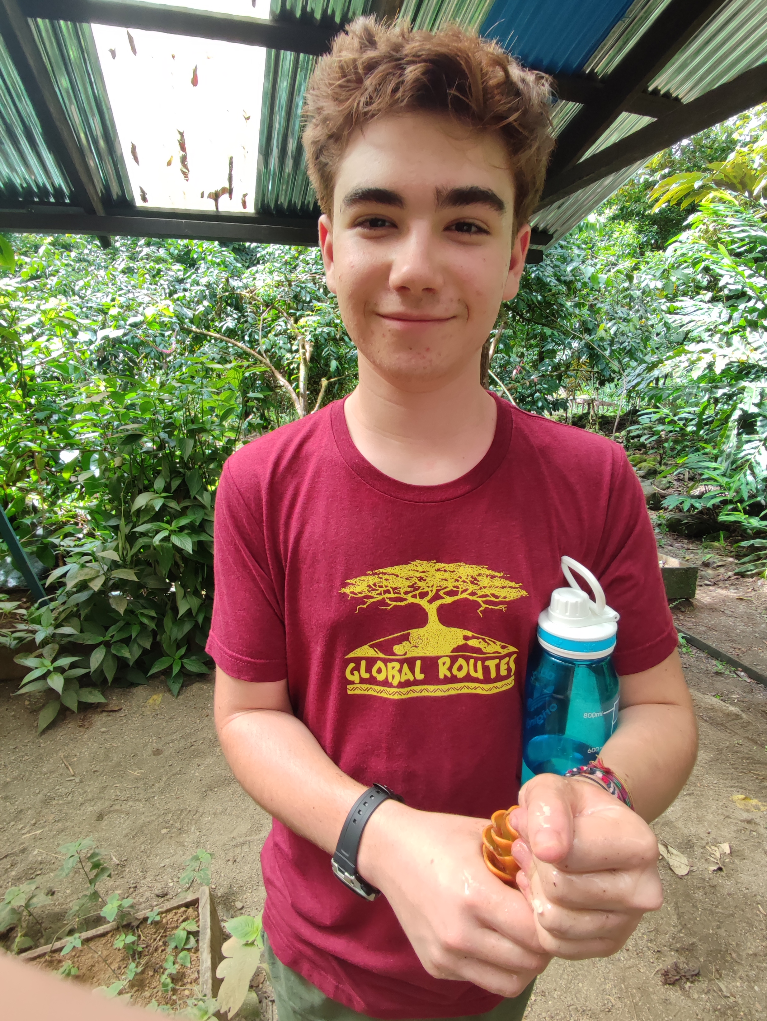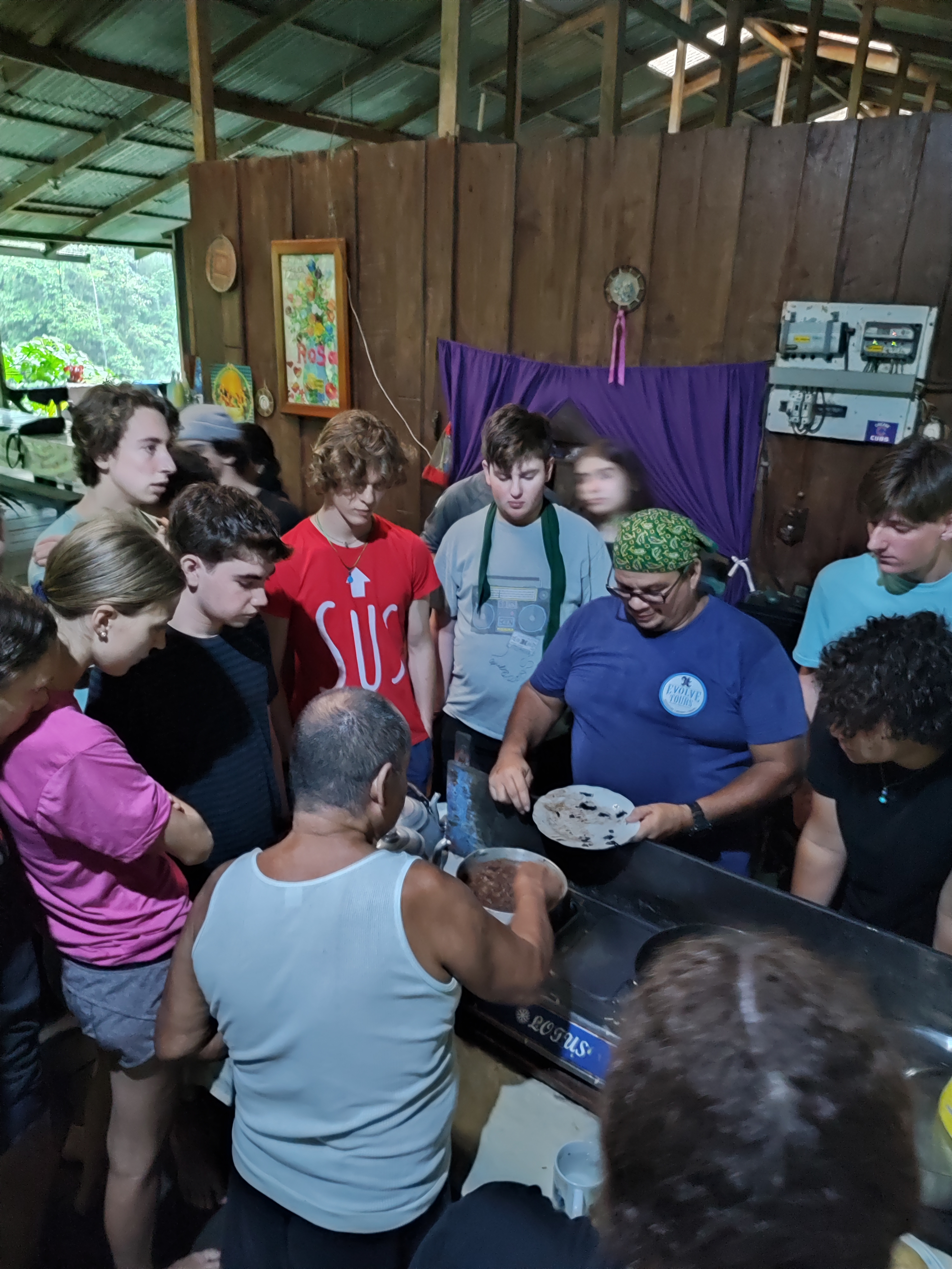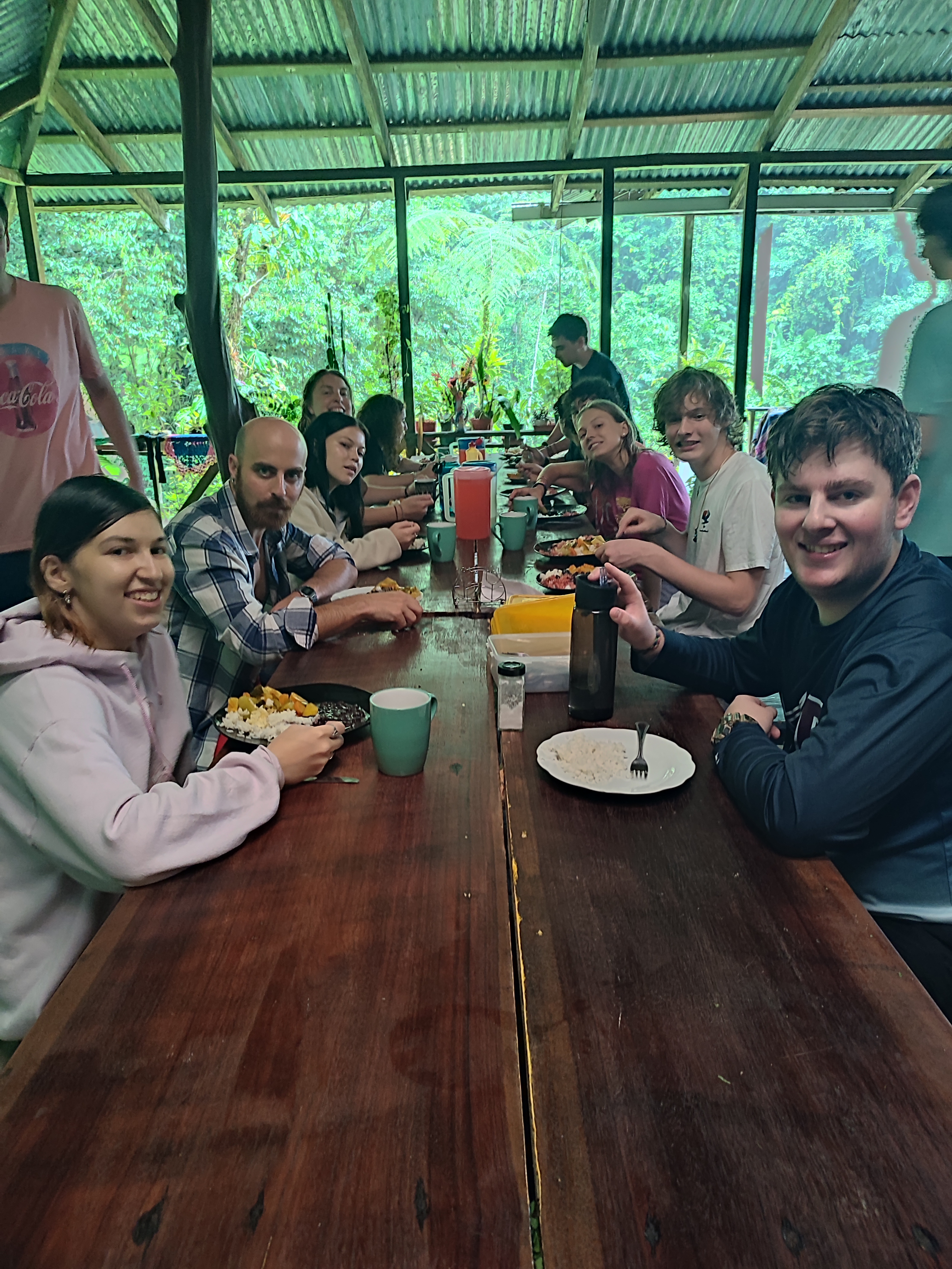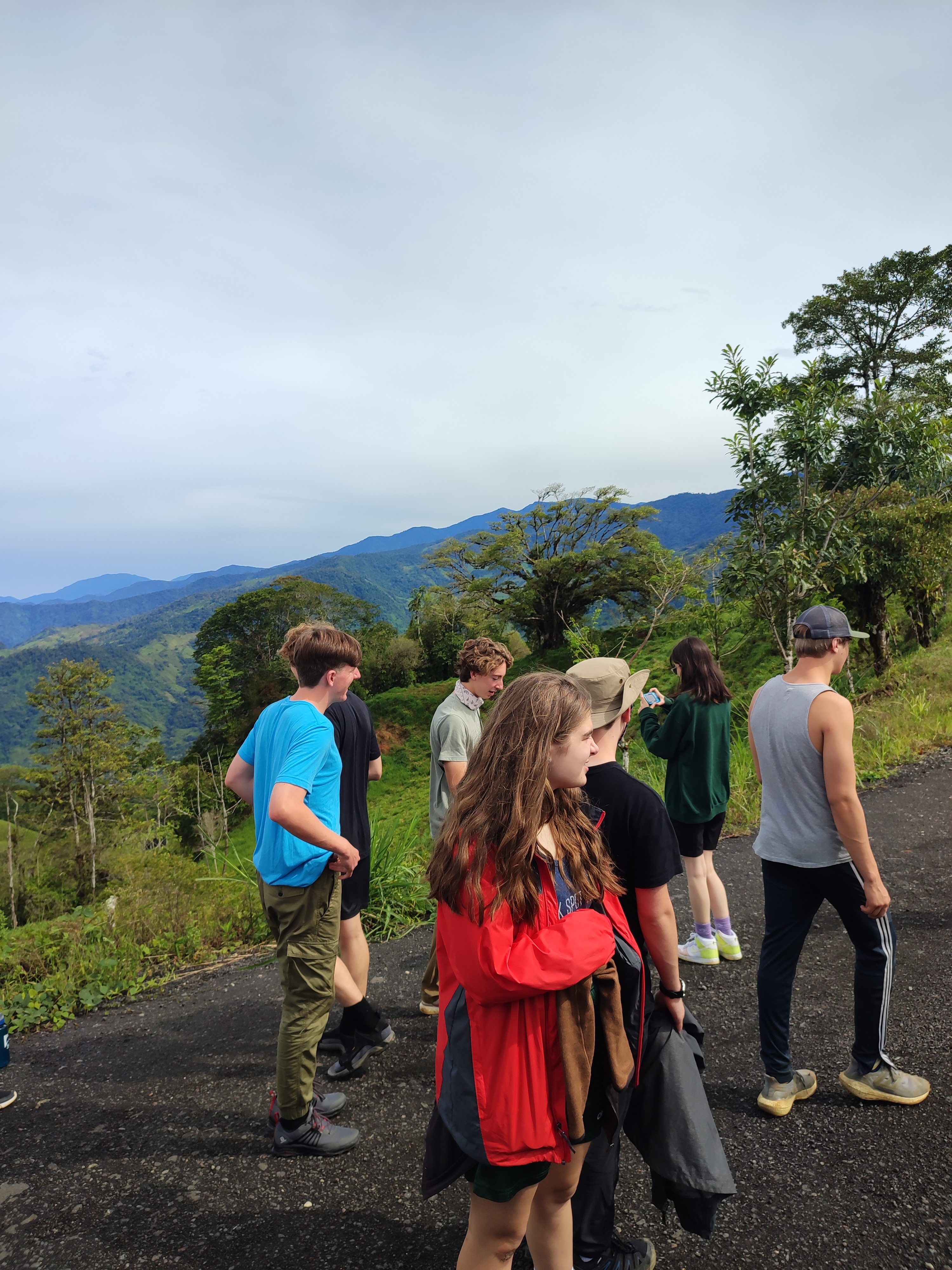 After a long day of travel we boarded our bus and headed into the mountains surrounding San Isidro. The ride was a blast with occasional beautiful views of the valley below and the mountains surrounding us. We arrived relatively late to our first dwelling of the trip: Hotel Mirador. The hotel’s extensive properties overlooking the valley was a perfect location for our orientation to the program. With the altitude so high we regularly found ourselves lost in the clouds and short of breath during our stay. The hotel consisted of a main dining room and reception area where we ate our meals during our stay and two smaller sets of rooms. At all times you could catch a glimpse of San Isidro and the forest surrounding it enduring the nights we enjoyed the view of the beautiful sea of Lights we landed in. We were situated on a steep hill surrounded by thick rainforest rich in ecological diversity. We observed many species of beautiful colored birds and plants, many we had never seen before. We enjoyed walks on steep hills overlooking smaller communities, and a once-in-a-lifetime zip line tour high in the canopy of giant trees. Our location offered us a setting in which we could establish long-lasting connections with our peers, and bask in the beautiful biodiversity of Costa Rica.
